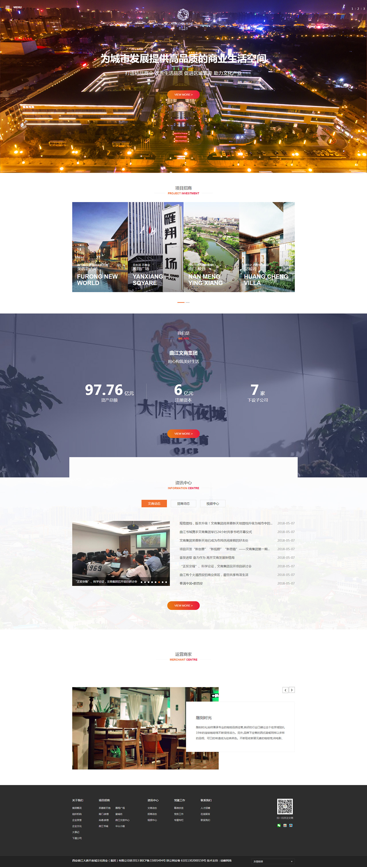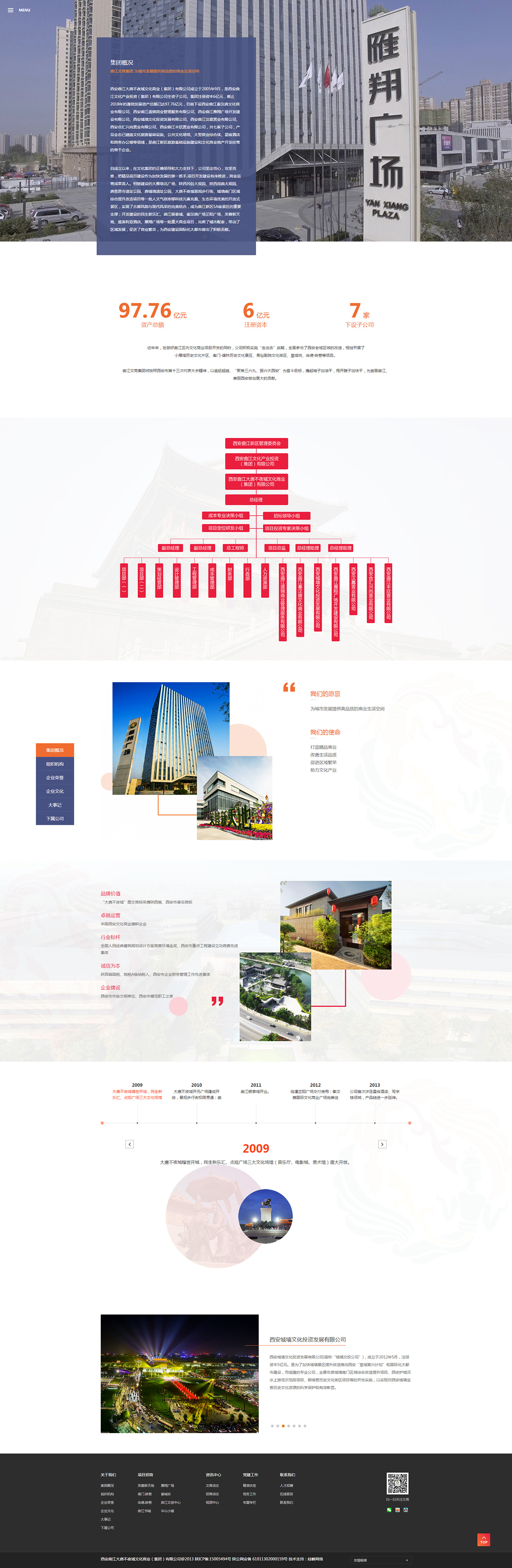 西安曲江大唐不夜城文化商業(yè)(集團)有限公司成立于2005年9月,是西安曲江文化產(chǎn)業(yè)投資(集團)有限公司全資子公司。集團注冊資本6億元,截止2018年的蓬勃發(fā)展資產(chǎn)總額已達97.76億元,目前下設西安曲江秦漢唐文化商業(yè)有限公司、西安曲江盛錦商業(yè)管理服務(wù)有限公司、西安曲江雁翔廣場(chǎng)開(kāi)發(fā)建設有限公司、西安城墻文化投資發(fā)展有限公司、西安曲江漢嘉置業(yè)有限公司、西安合匯興尚置業(yè)有限公司、西安曲江豐欣置業(yè)有限公司,共七家子公司,產(chǎn)品業(yè)態(tài)已涵蓋文化旅游基礎設施、公共文化場(chǎng)館、大型商業(yè)綜合體、星級酒店和商務(wù)辦公樓等領(lǐng)域,是曲江新區旅游基礎設施建設和文化商業(yè)地產(chǎn)開(kāi)發(fā)經(jīng)營(yíng)的骨干企業(yè)。