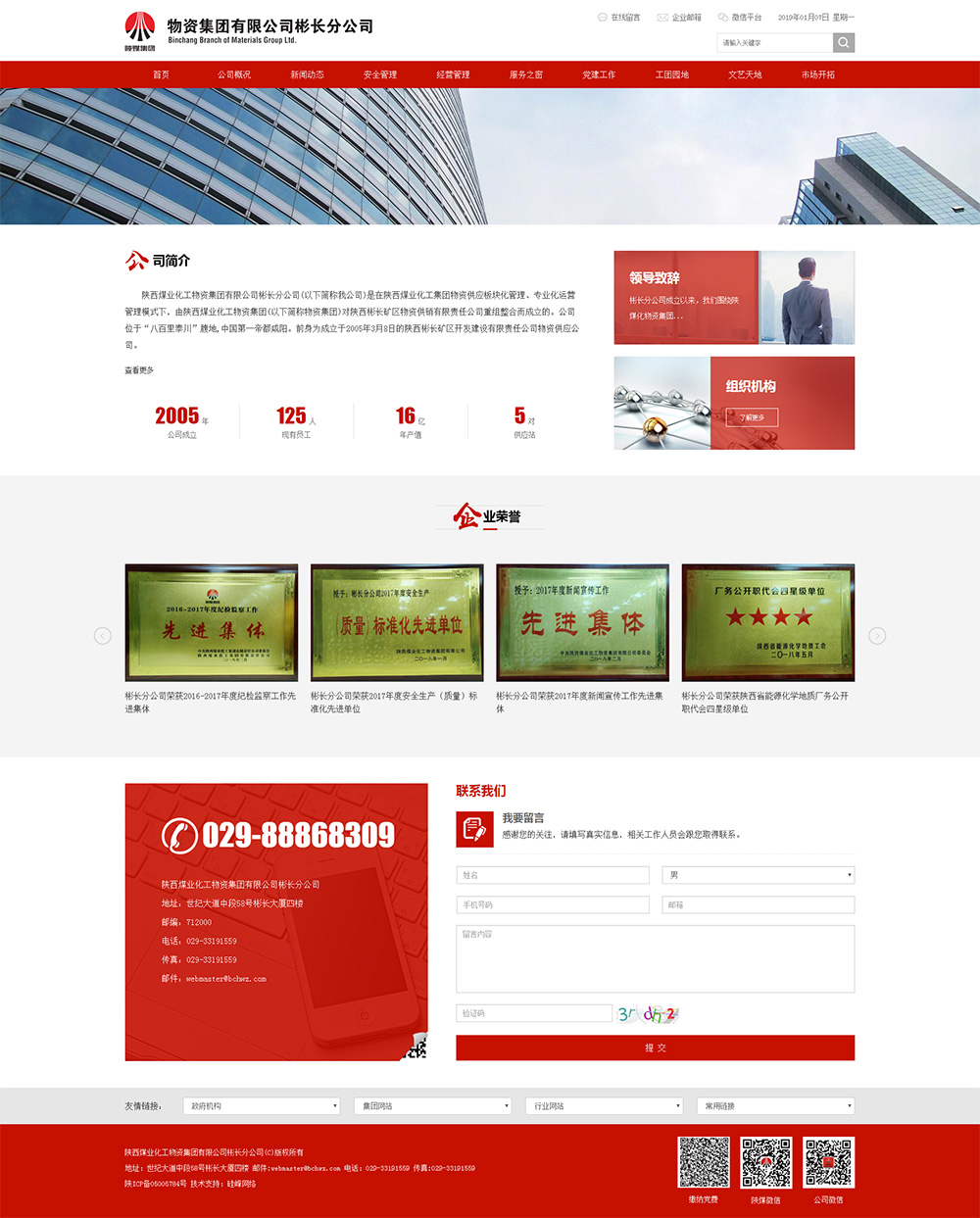 陜西煤業(yè)化工物資集團有限公司彬長(cháng)分公司(以下簡(jiǎn)稱(chēng)我公司)是在陜西煤業(yè)化工集團物資供應板塊化管理、專(zhuān)業(yè)化運營(yíng)管理模式下,由陜西煤業(yè)化工物資集團(以下簡(jiǎn)稱(chēng)物資集團)對陜西彬長(cháng)礦區物資供銷(xiāo)有限責任公司重組整合而成立的。公司位于“八百里泰川”腹地,中國第一帝都咸陽(yáng)。前身為成立于2005年3月8日的陜西彬長(cháng)礦區開(kāi)發(fā)建設有限責任公司物資供應公司。