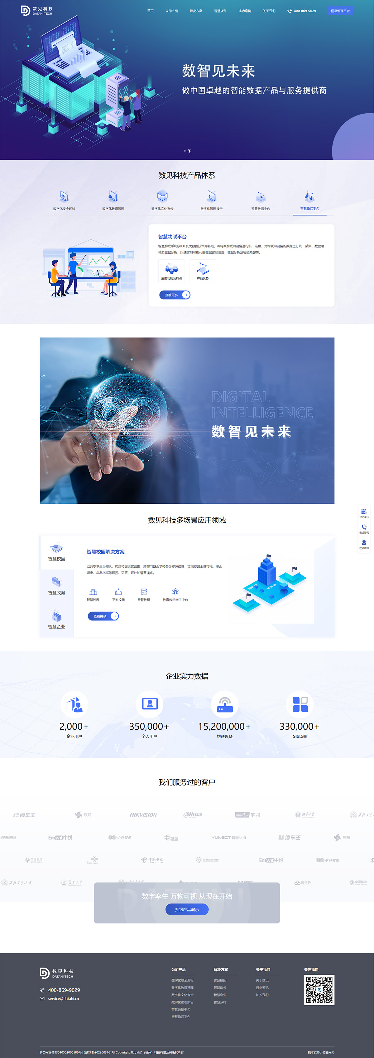 數見(jiàn)科技(杭州)有限公司將數字孿生技術(shù)與可視化相結合,通過(guò)軟硬件一體化產(chǎn)品,設計、建設各行業(yè)數據平臺,集成各類(lèi)數據信息,在數字中樞平臺上,通過(guò)辦公OA、資源平臺、后勤管理、安防等軟件應用,使用智能硬件,如安防設備、IoT設備、可穿戴設備等智能硬件,形成統一的應用集成、資源共享、用戶(hù)管理、訪(fǎng)問(wèn)控制和信息交換的支撐環(huán)境。平臺可以滿(mǎn)足長(cháng)期建設和未來(lái)信息化建設的業(yè)務(wù)應用系統,提供與其他信息系統進(jìn)行數據交換和業(yè)務(wù)協(xié)同的數據接口和應用接口。
