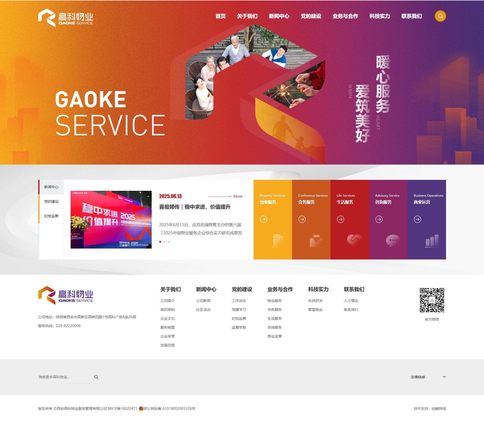 恭賀由【硅峰網(wǎng)絡(luò )】設計開(kāi)發(fā)的【西安高科物業(yè)服務(wù)管理有限公司】門(mén)戶(hù)官網(wǎng)上線(xiàn)了! 高科物業(yè)作為西安高科集團旗下國有全資企業(yè),始終以踐行行業(yè)高質(zhì)量發(fā)展理念為錨點(diǎn),與西安高新區共同成長(cháng)近三十載。2023年底在高科集團“轉型升級、創(chuàng )新發(fā)展”全面加速之際,高科物業(yè)完成重組,成為高科集團改革后“新服務(wù)”發(fā)展的重要板塊。 本次網(wǎng)站改版,結合高科物業(yè)全新品牌logo及vi主色,從設計上圍繞“暖心服務(wù) 愛(ài)筑美好”的品牌精神內核,為高科物業(yè)打造全新的企業(yè)面貌。首頁(yè)設計顛覆傳統長(cháng)版設計邏輯,以短小精悍的首頁(yè)布局重構視覺(jué)體驗 ,摒棄冗長(cháng)信息堆砌,聚焦核心價(jià)值提煉,通過(guò)輕量化結構與創(chuàng )意排版,讓訪(fǎng)客瞬間收獲耳目一新的瀏覽驚喜,實(shí)現從‘信息灌輸’到‘記憶錨定’的體驗升級。
