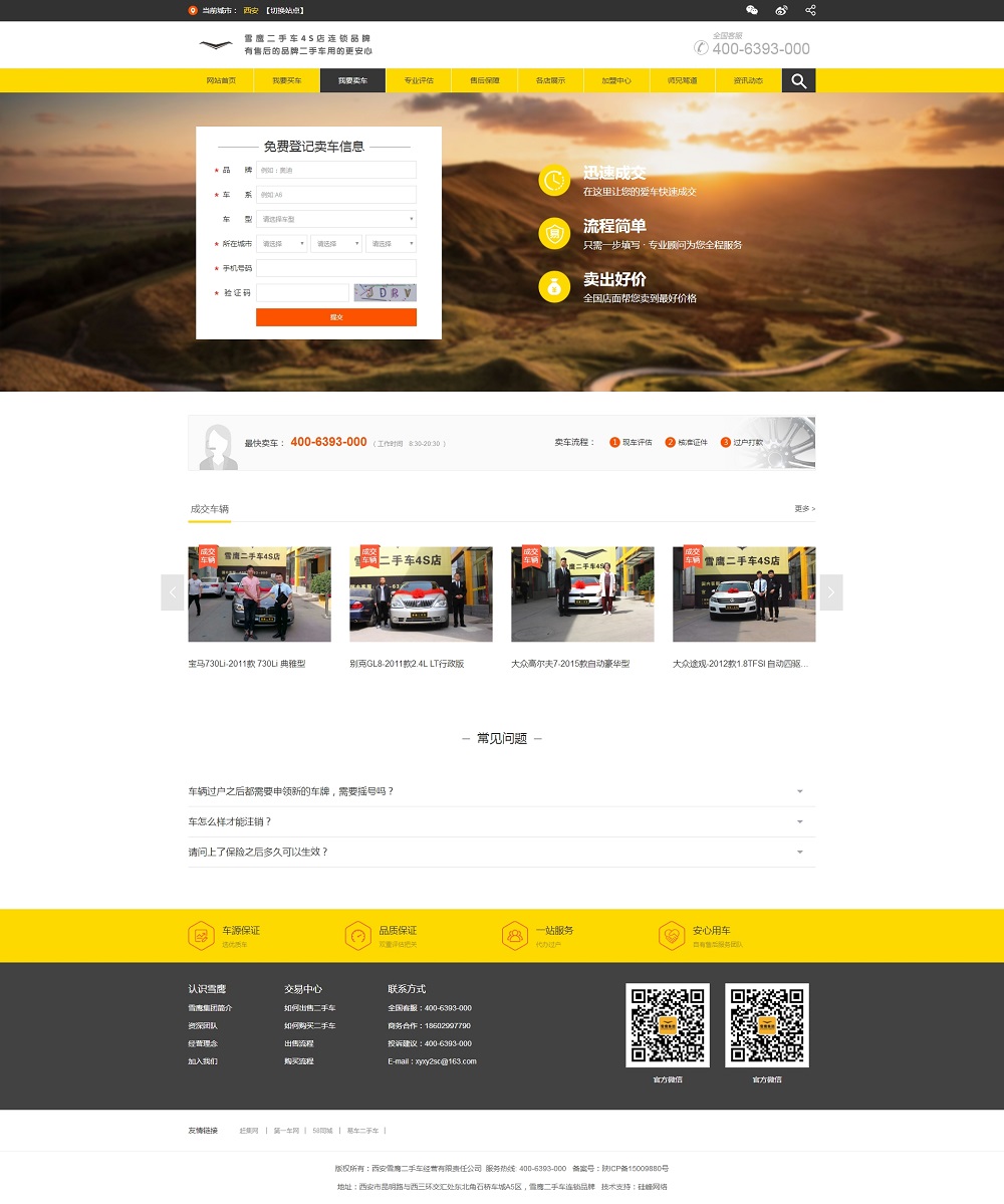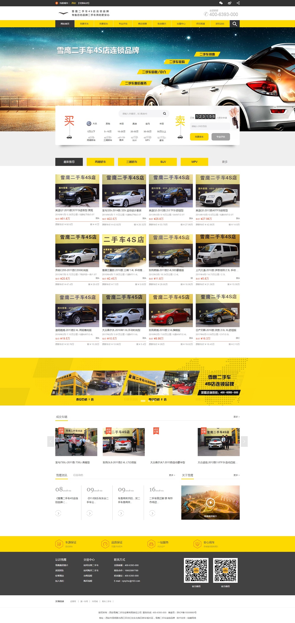 恭賀由硅峰網(wǎng)絡(luò )設計開(kāi)發(fā)的【雪鷹二手車(chē)】系統平臺正式上線(xiàn),本平臺可進(jìn)行二手車(chē)輛的買(mǎi)賣(mài)及評估等服務(wù),歡迎有車(chē)的朋友多多關(guān)注!