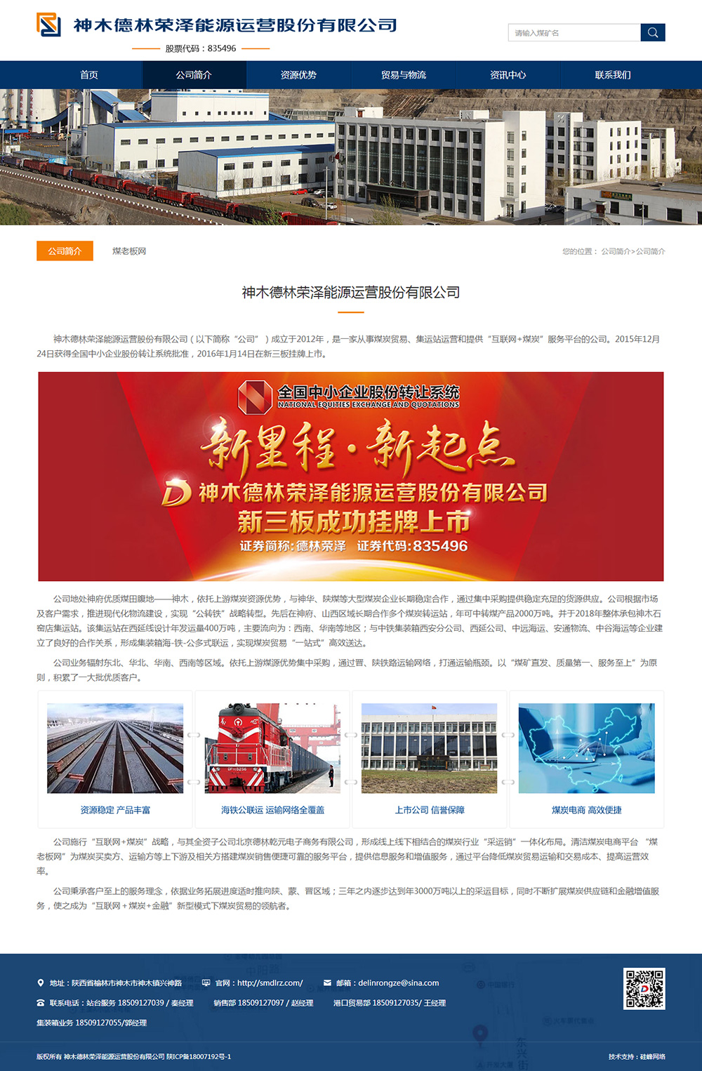 神木德林榮澤能源運營(yíng)股份有限公司(以下簡(jiǎn)稱(chēng)“公司”)成立于2012年,是一家從事煤炭貿易、集運站運營(yíng)和提供“互聯(lián)網(wǎng)+煤炭”服務(wù)平臺的公司。2015年12月24日獲得全國中小企業(yè)股份轉讓系統批準,2016年1月14日在新三板掛牌上市。公司地處神府優(yōu)質(zhì)煤田腹地——神木,依托上游煤炭資源優(yōu)勢,與神華、陜煤等大型煤炭企業(yè)長(cháng)期穩定合作,通過(guò)集中采購提供穩定充足的貨源供應。