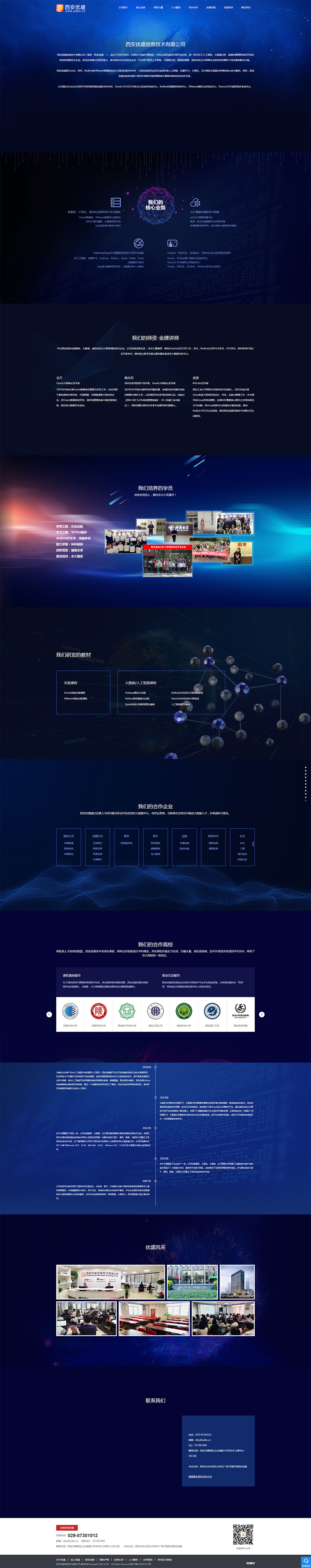西安優(yōu)盛信息技術(shù)有限公司(簡(jiǎn)稱(chēng)“西安優(yōu)盛”),成立于2007年6月,總部位于西安市雁塔區,并在北郊及南郊分別開(kāi)設分校,是一所專(zhuān)注于人工智能、大數據分析、數據庫管理等項目開(kāi)發(fā)和培訓的高新技術(shù)企業(yè)。依托自身強大的研發(fā)能力,聯(lián)合國內外眾多知名企業(yè),可為用戶(hù)提供人工智能、大數據分析、數據庫管理、虛擬化和云計算等自主研發(fā)的軟硬件產(chǎn)品及整體解決方案。