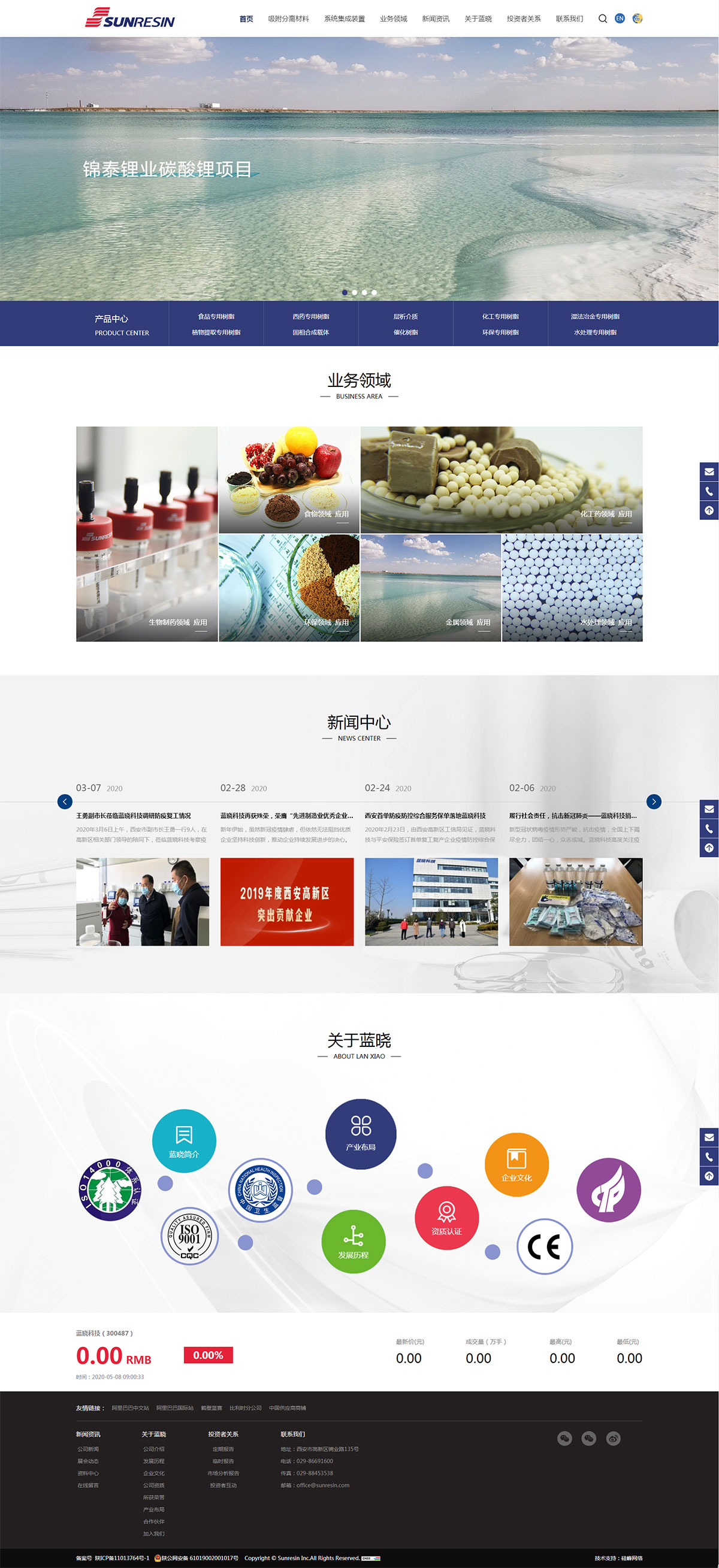藍曉科技(股票代碼:SZ 300487)專(zhuān)業(yè)從事吸附分離材料的研發(fā)、生產(chǎn)和銷(xiāo)售,提供以特種吸附分離材料為核心的配套系統裝置和整體解決方案。藍曉科技是國家重點(diǎn)高新技術(shù)企業(yè),是中國離子交換樹(shù)脂行業(yè)副理事長(cháng)單位,國家科技進(jìn)步二等獎獲得者。公司總部位于西安高新區藍曉科技園,在西安、渭南、鶴壁、比利時(shí)等地分別建有吸附分離材料生產(chǎn)基地、系統設備及集成裝置生產(chǎn)區、危廢資源化回收園區等。年產(chǎn)吸附分離材料5萬(wàn)方,提供系統裝置100余套。公司承建陜西省功能高分子吸附分離工程技術(shù)研究中心,與南開(kāi)大學(xué)共建分離材料聯(lián)合實(shí)驗室,與南京大學(xué)合作建有“張全興院士專(zhuān)家工作站”。