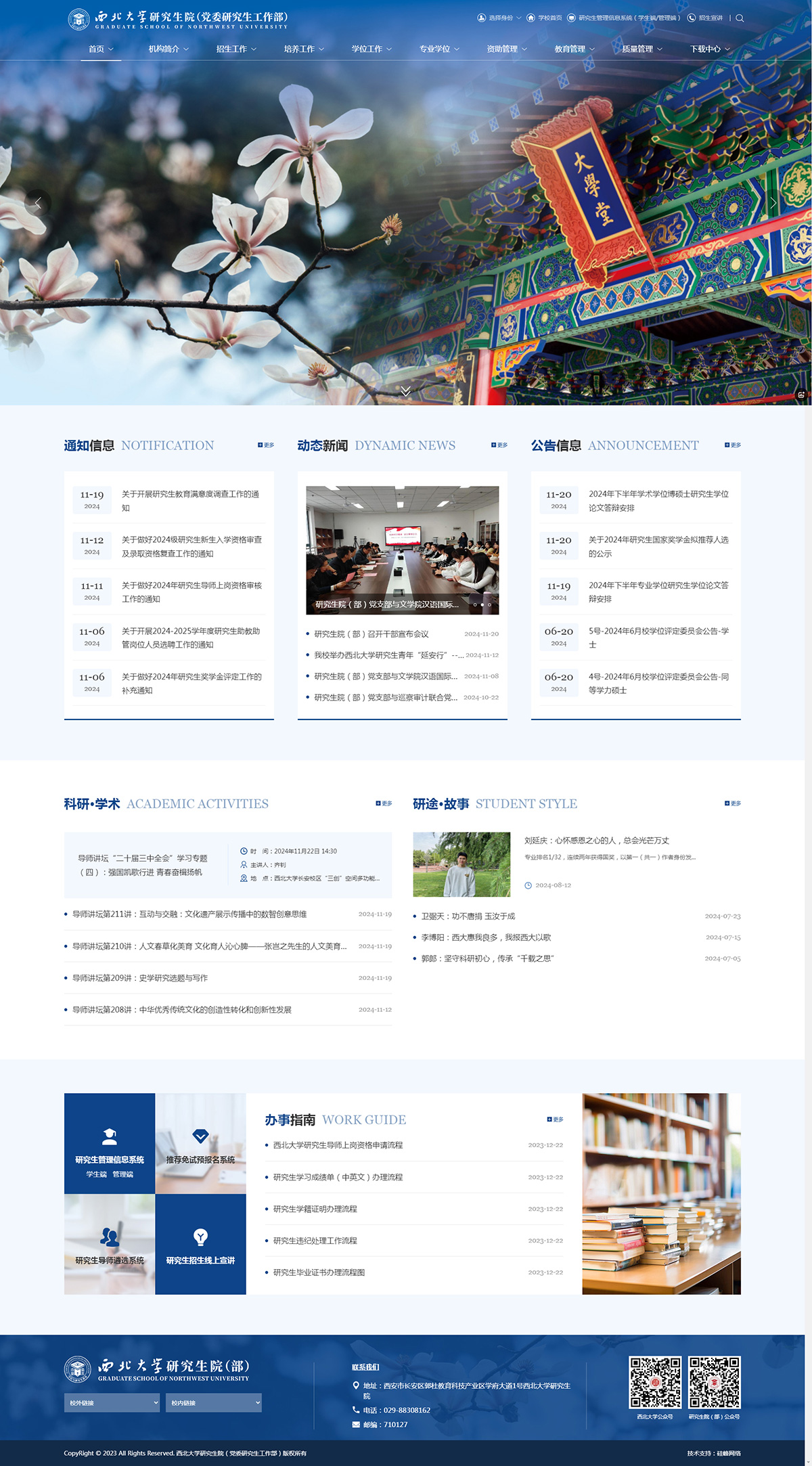 西北大學(xué)(Northwest University),由陜西省人民政府主管,入選中西部高?;A能力建設工程,為教育部與陜西省人民政府共建綜合性全國重點(diǎn)大學(xué) ,是國家“雙一流”建設高校、國家“211工程”建設院校?!竟璺寰W(wǎng)絡(luò )】于2023年開(kāi)始陸續為貴校黨群系統、行政部門(mén)、院系、科研機構、業(yè)務(wù)&服務(wù)單位提供網(wǎng)站制作與技術(shù)維護工作,先后合作的單位有:財務(wù)處、研究生院、數學(xué)學(xué)院、外國語(yǔ)學(xué)院、離退處、科學(xué)史高等研究院、中亞人類(lèi)與環(huán)境一帶一路聯(lián)合實(shí)驗室、中國動(dòng)物靈長(cháng)類(lèi)學(xué)分會(huì )......