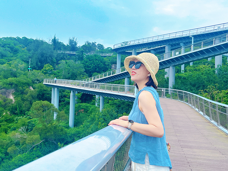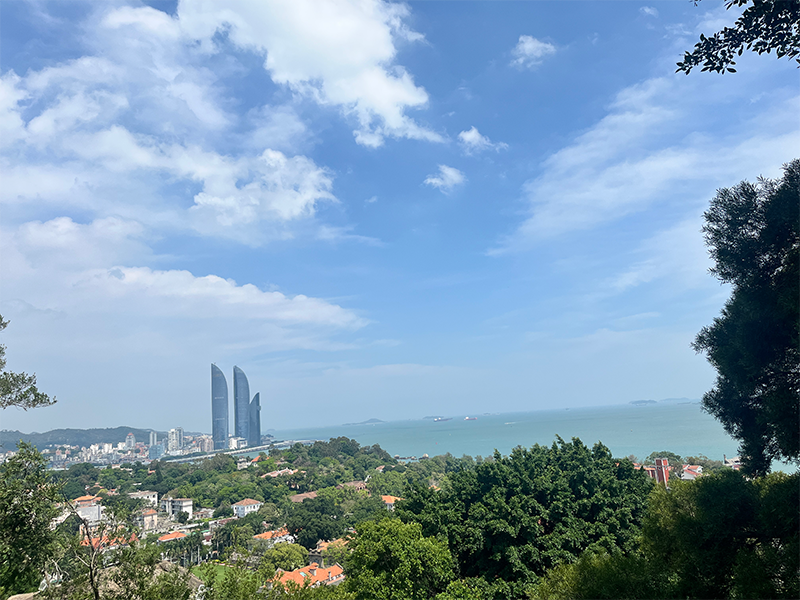 站在最高處俯瞰,鼓浪嶼的紅瓦綠樹(shù)、廈門(mén)的高樓大廈、遠處湛藍的大海盡收眼底。