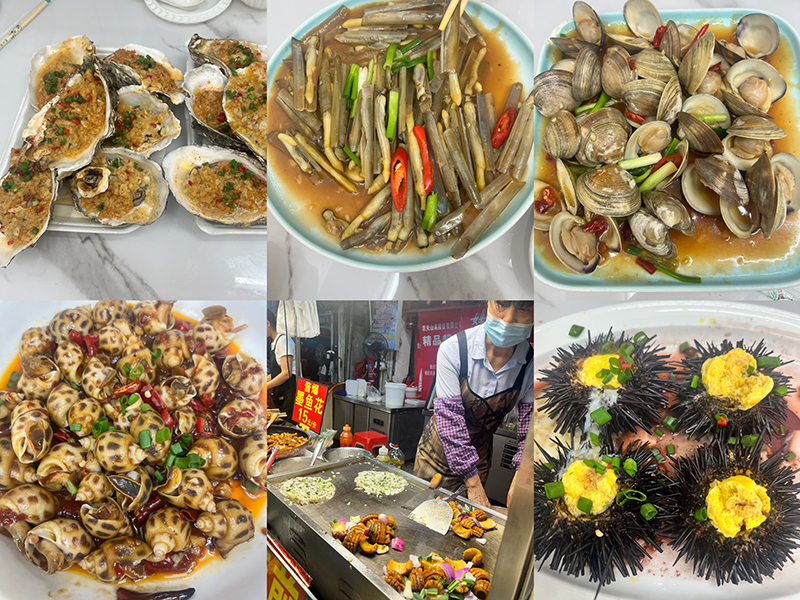 一路品嘗鼓浪嶼的特色小吃,魚(yú)丸湯、海蠣煎、金包銀、馬拉桑果汁……氣氛熱烈而歡樂(lè )。